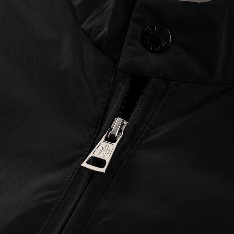 Define your urban uniform with the timeless elegance of this Moncler Bomber Jacket. Expertly tailored, this jacket delivers a sleek, streamlined silhouette that elevates any casual look. Crafted from premium black nylon, it provides lightweight protection and a refined finish. The design features a classic baseball collar, a full-front zip closure, and comfortable ribbed cuffs and hem. The authentic felt Moncler logo patch on the sleeve instantly identifies this luxury piece. A versatile essential, this bomber transitions effortlessly from cool evenings to casual weekend excursions, allowing you to embrace everyday luxury.